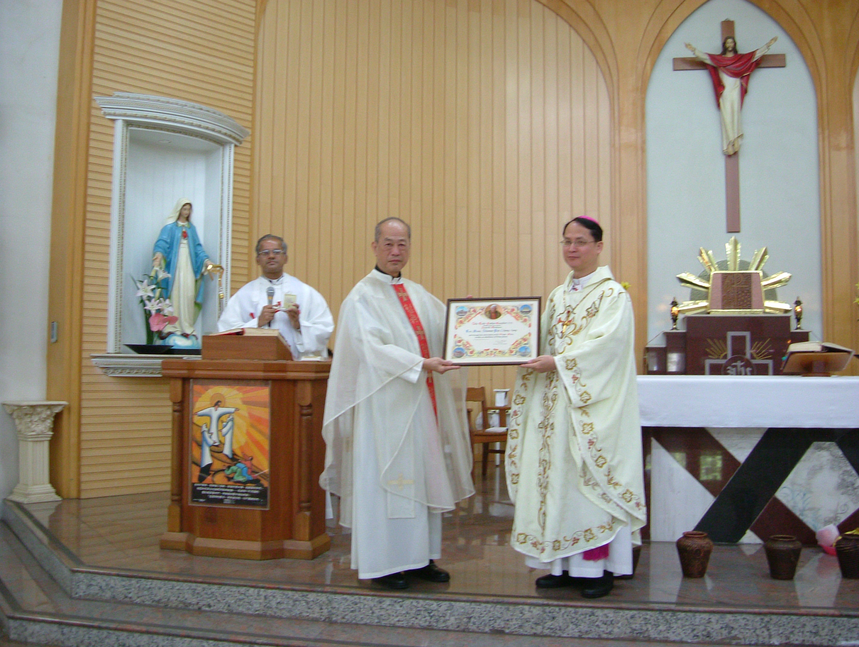 桃園市聖母聖心天主堂主任司鐸白正龍蒙席,以持續廣譯兩位宗座文諭以及教廷宣示、通令等重要文獻,對天主教會在本地之福傳發展卓著勳績,深受肯定!教宗本篤十六世特頒贈「宗座降福」狀與獎章,授予白蒙席,表達感謝祝福與勗勉;本週主日(八月六日)上午八時三十分,教廷駐華代辦安博思蒙席與新竹教區新任李克勉主教,欣然蒞臨聖母聖心天主堂,與白蒙席共祭主顯節感恩彌撒,彌撒中安博思代辦宣佈了這項來自梵諦岡教廷的好消息,並將「宗座降福」狀與獎章轉頒白蒙席,白蒙席均慷慨歡悅的邀請李克勉主教共持並分享這份珍貴的榮耀,全體教友莫不歡欣鼓舞、同有榮焉;接著李克勉主教也敬贈白蒙席一瓶超過三十五年酒齡的陳年佳釀,寓意雙賀,誠以白蒙席晉鐸已逾三十七年。